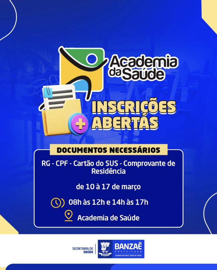 Transforme seu bem-estar com a gente! Chegou a sua chance de cuidar da saúde e ter uma rotina mais ativa. De 10 a 17 de março, a Academia da Saúde estará com inscrições abertas para novos alunos.