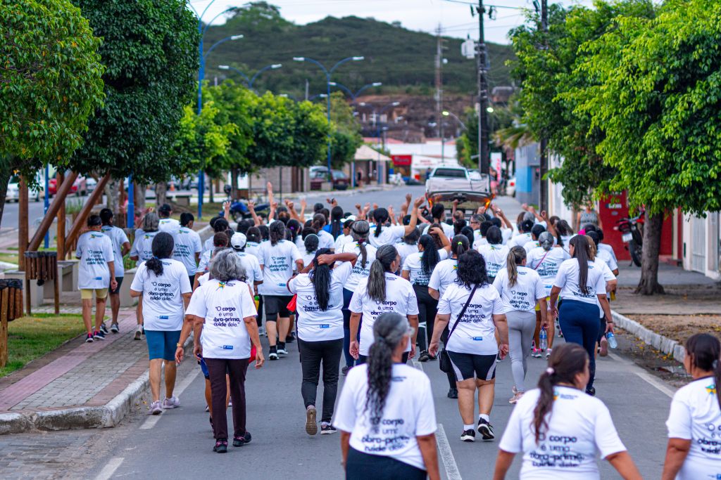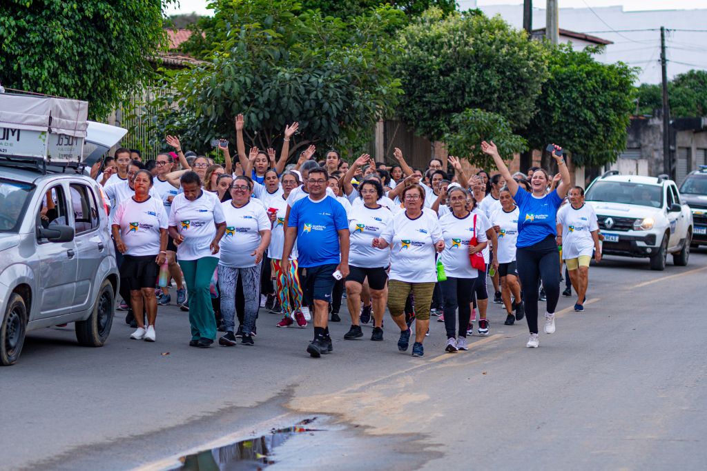 Dezenas de participantes da Academia da Saúde se reuniram em uma caminhada cheia de energia e disposição. Encerrando a programação, uma animada aula coletiva celebrou o cuidado com a saúde e incentivou ainda mais a prática de atividades físicas.